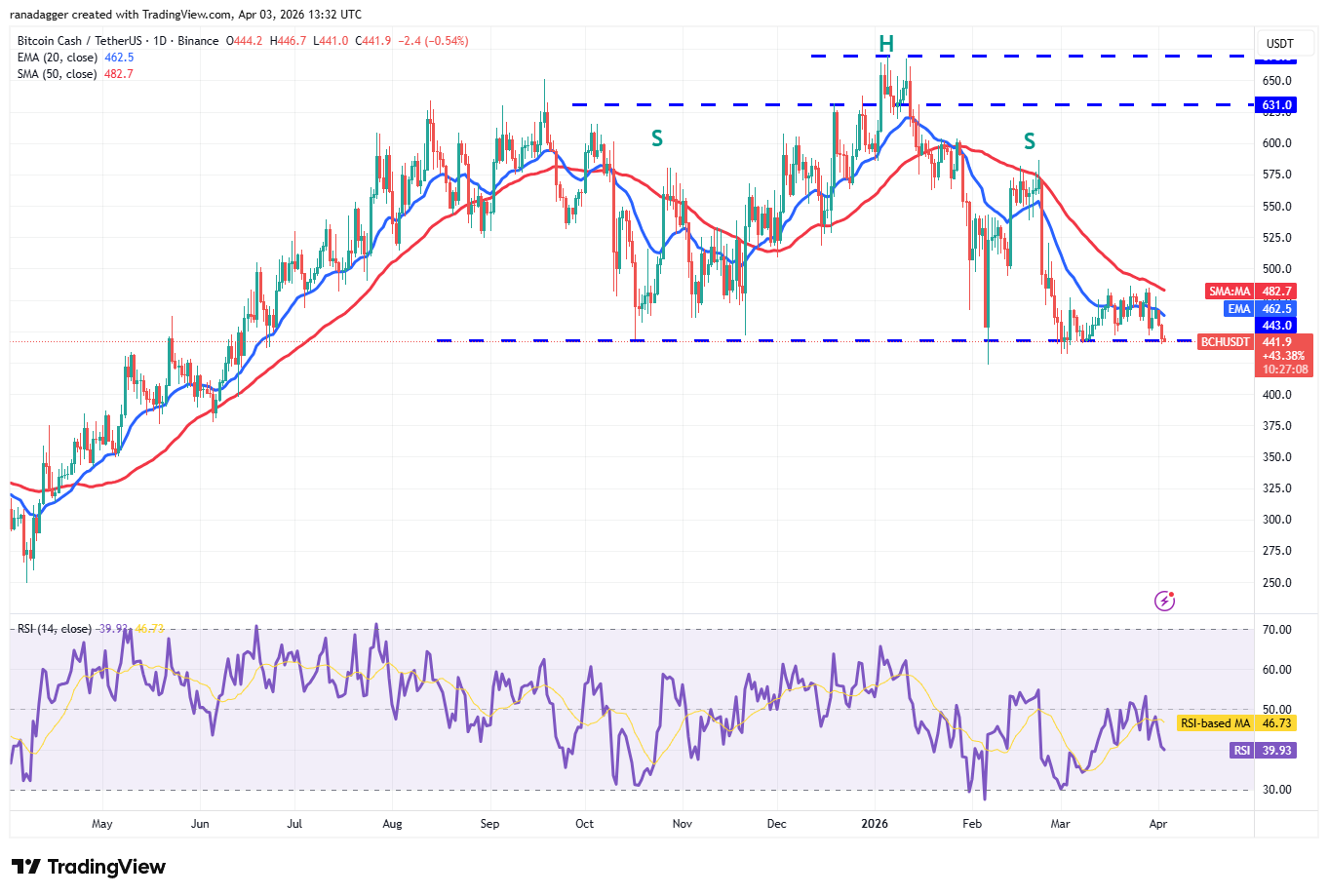Bitcoin Cash (BCH) has dropped to the $443 level, which is a critical support for the bulls to defend.