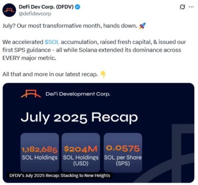 Meanwhile, Upexi CEO Allan Marshall said that July “was a game-changing month” for the company after raising over $200 million for additional SOL purchases and increasing its holdings to over two million tokens.