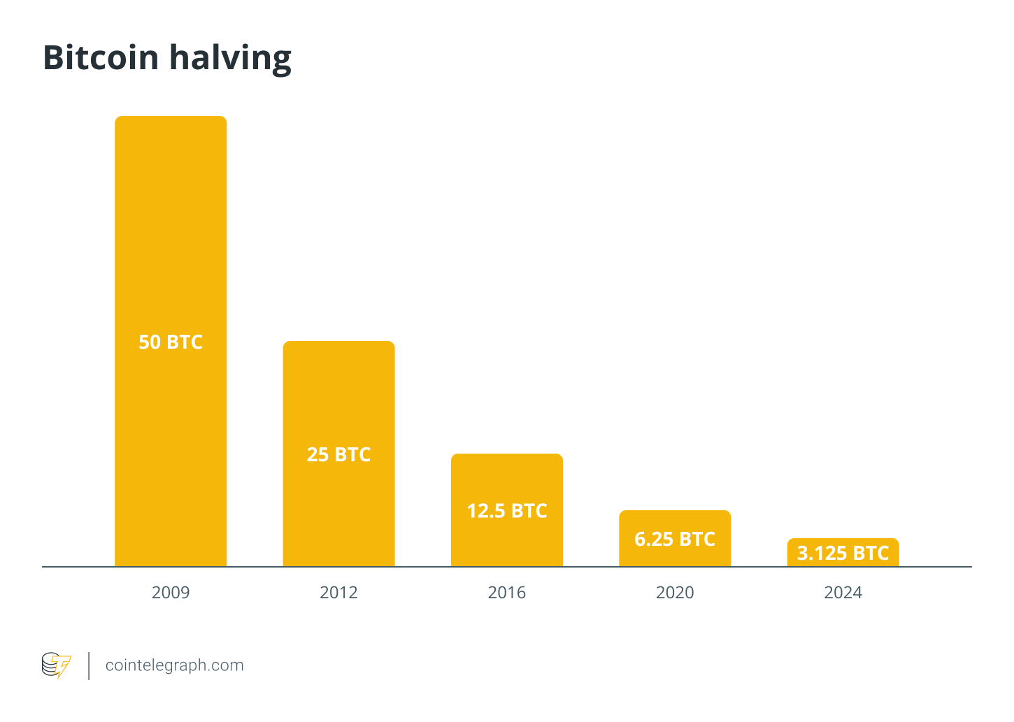 When Bitcoinโ€™s fourth halving took place in April 2024, the block reward fell from 6.25 BTC to 3.125 BTC.