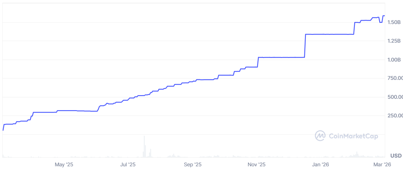 RLUSD accounts for a small but growing share of the global stablecoin market, with a circulating supply of about $1.5 billion.