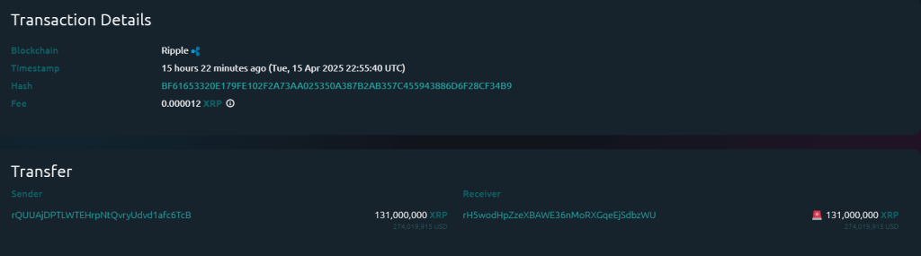 As per blockchain monitoring by Whale Alert, an unknown owner moved 131 million XRP between wallets in a single transaction. The activity prompted conversations on trading platforms as investors attempted to decipher the move. The wallet addresses used haven’t been traced to any known exchanges or parties, further fueling uncertainty.