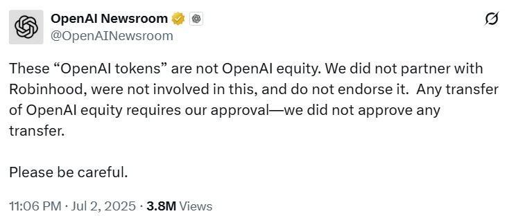 OpenAI said Robinhood’s unapproved OpenAI tokens offer no equity ownership rights, causing regulators in Lithuania to open a formal inquiry. But that’s just the start. With concerns over how different jurisdictions approach tokenized shares, the boundary between innovation and illegality, and whether there are sufficient legal protections for stock token holders.