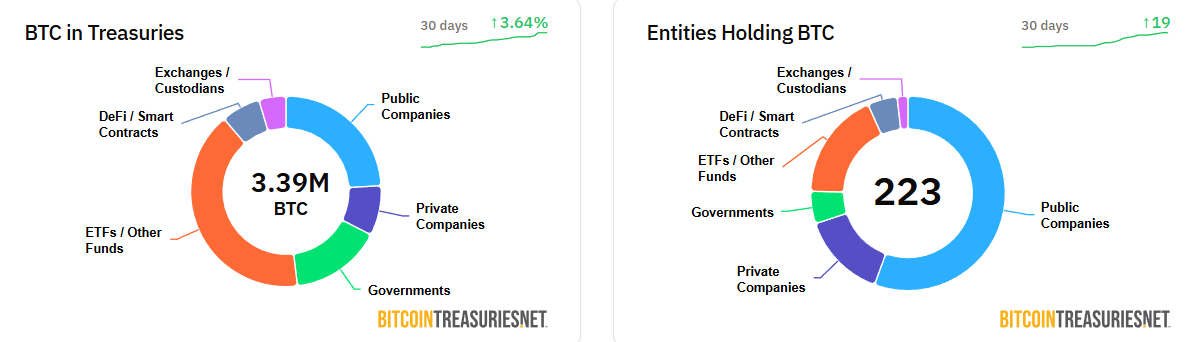 BTC in corporate treasuries. Source: BitcoinTreasuries.NET