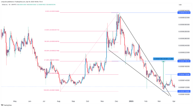 Therefore, the coin will likely bounce back once the ongoing crypto market crash because of Trump’s tariffs end. More gains will be confirmed if SHIB breaks above the neckline at $0.00001570. If that happens, it could rally toward the 50% Fibonacci retracement level at $0.000020, a move that would represent a 60% gain from current levels.