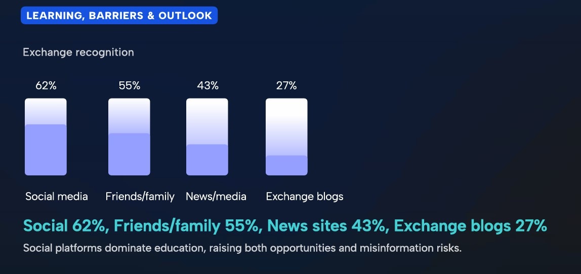 The results showed that 62% of the respondents cited social media as their primary source for crypto education. The researchers noted that this raises both opportunities and risks of misinformation.