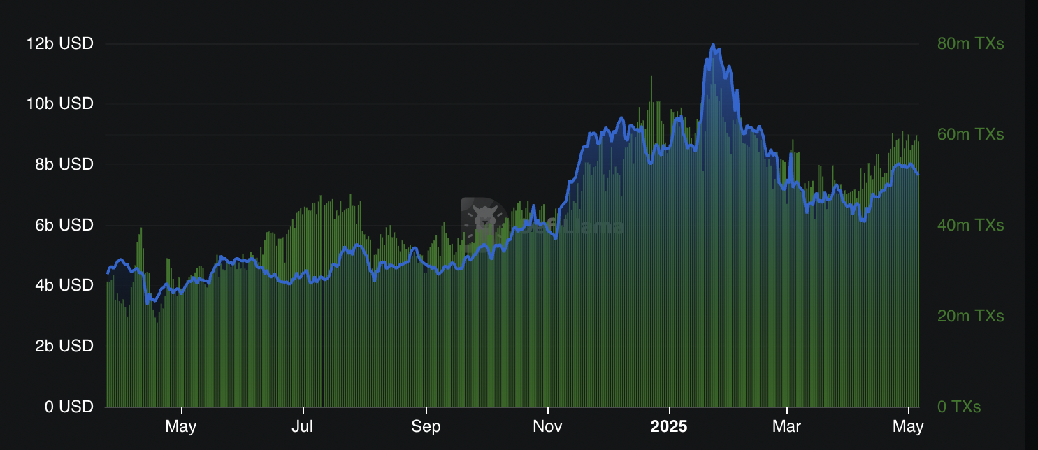 Solana’s TVL has risen from $6.1 billion on April 9 to $7.65 billion on May 6, an increase of over 25% in almost 30 days.