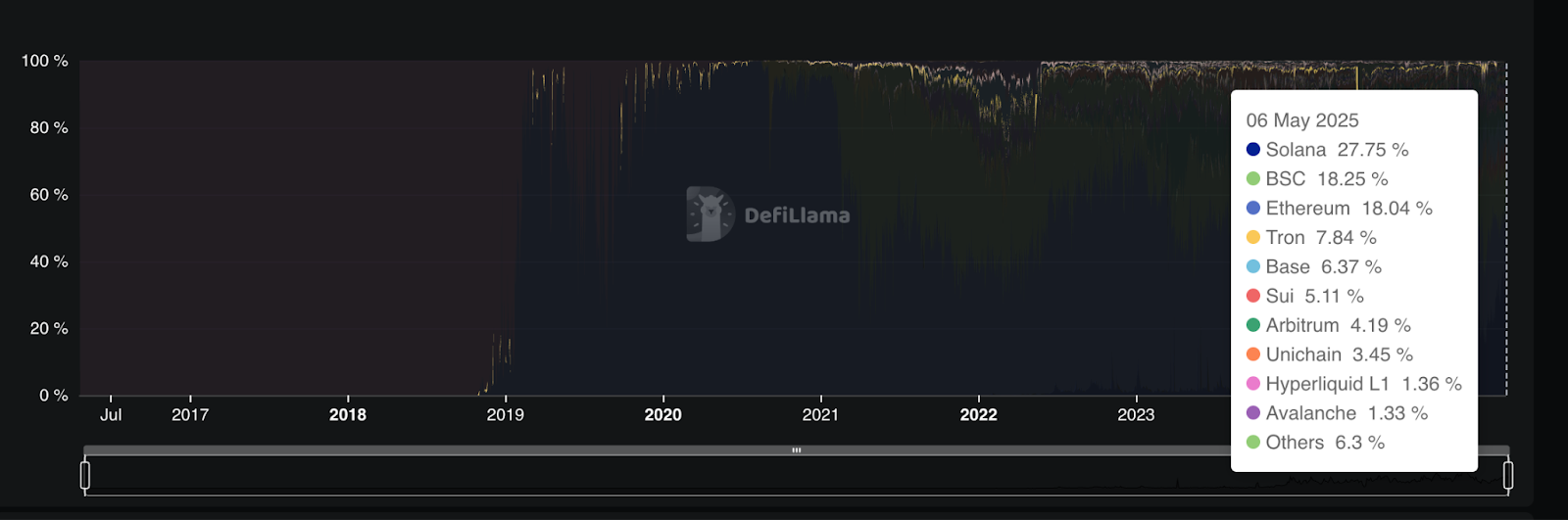 Blockchains’ DEX volume dominance. Source: DefiLlama