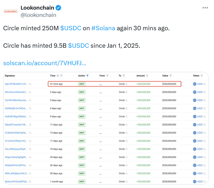 Moreover, Solana has been unable to break this downtrend despite seeing over $9.5 billion worth of newly minted USDC (USDC) stablecoins since Jan. 1, 2025, according to crypto intelligence platform Lookonchain.