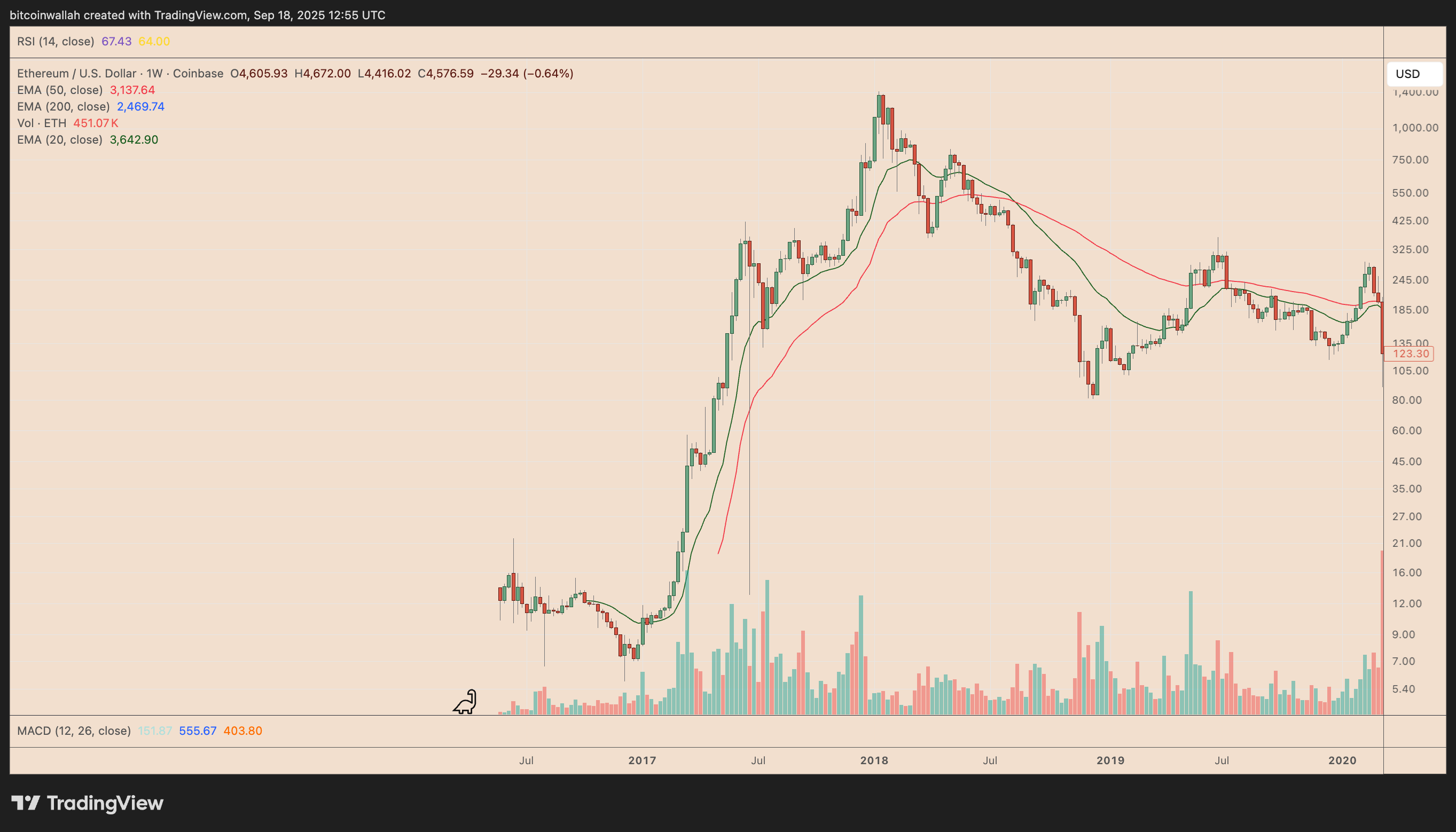 For instance, Ether (ETH) surged from ~$10 to ~$400 in the first half of 2017, entered a six-month reaccumulation phase, then broke out again to hit about $1,400 by January 2018.