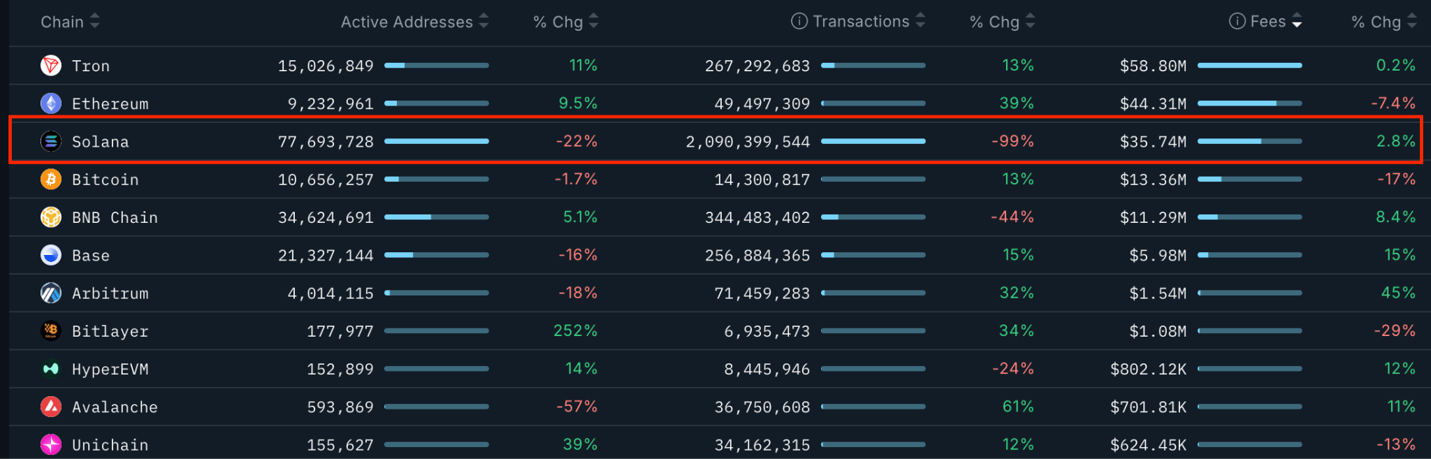 However, onchain activity tells a different story. Despite Solana’s DeFi ecosystem boasting $12 billion in total value locked (TVL) and leading token launches, network activity has not scaled proportionally with price gains.