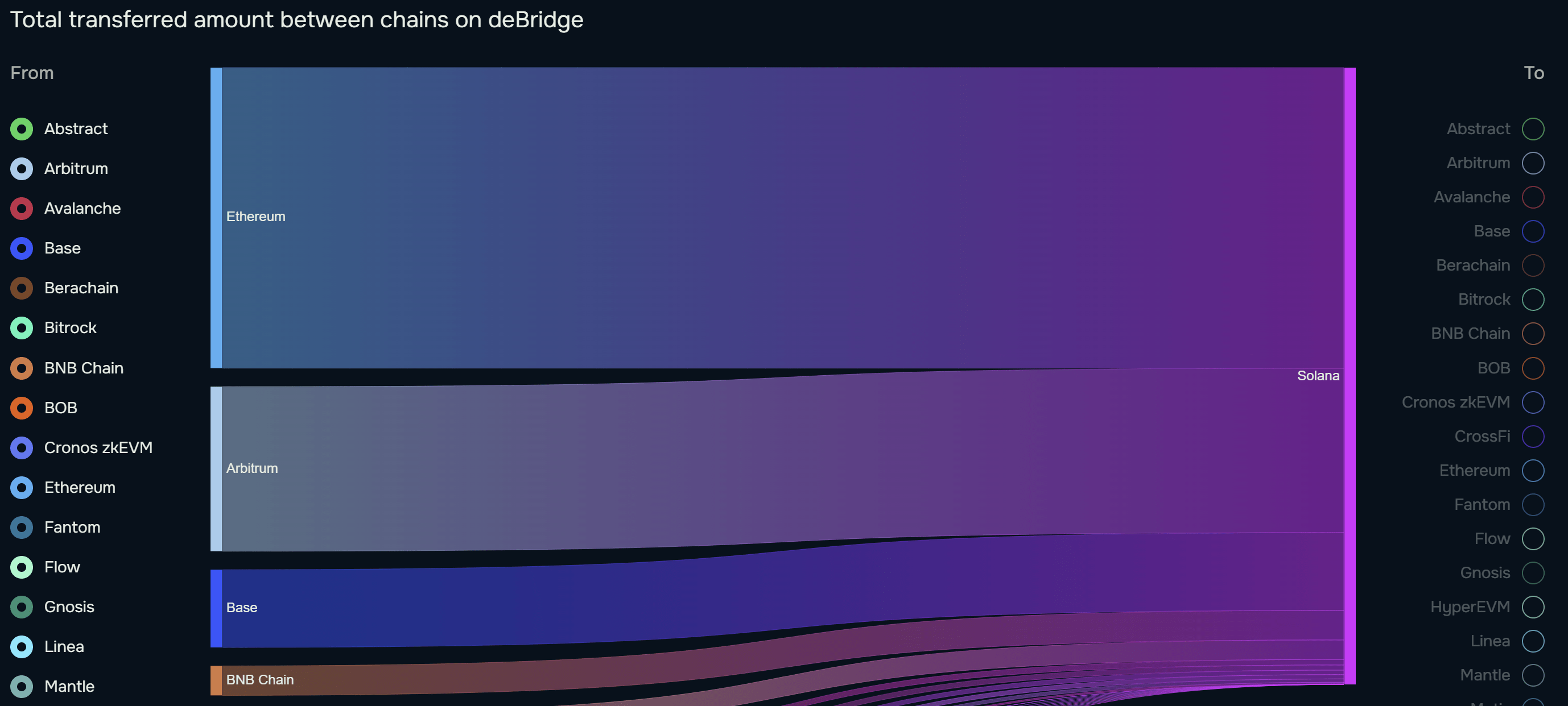 In the last 30 days, over $165 million in liquidity has been bridged to Solana from other blockchains, reflecting growing confidence in the network. Ethereum led with $80.4 million in transfers, followed by Arbitrum with $44 million, per Debridge data. Base, BNB Chain, and Sonic contributed $20 million, $8 million, and $6 million, respectively.