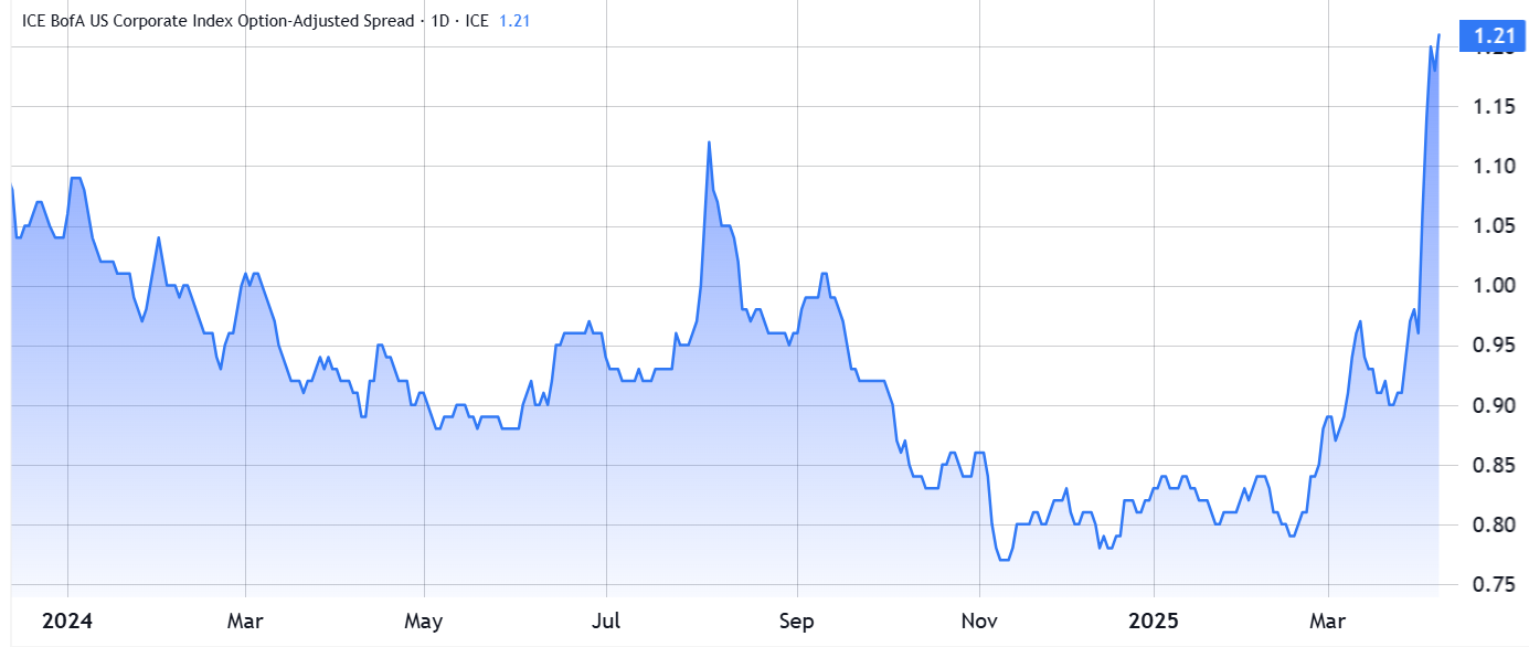 Dan Krieter, director of fixed income strategy at BMO Capital Markets, told Reuters that corporate bond spreads have experienced their largest one-week widening since the regional banking crisis in March 2023. Corporate bond spreads measure the difference in interest rates between corporate bonds and government bonds, reflecting the additional risk investors take when lending to companies.