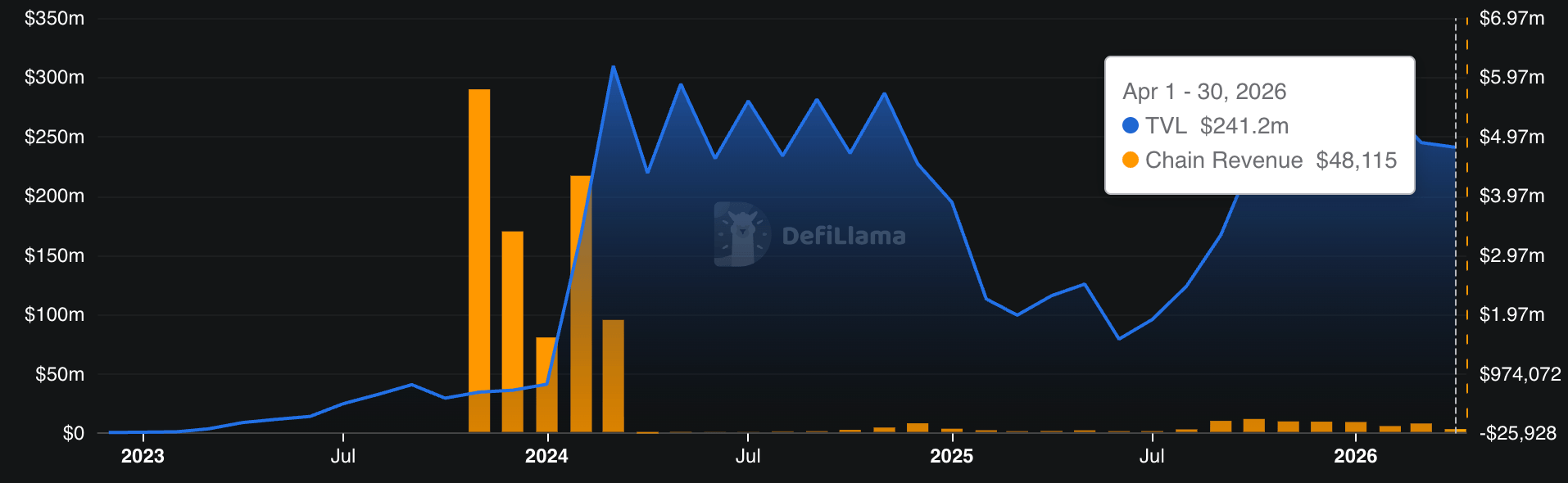 Despite the revenue drop, Starknet continues to hold nearly $242 million in total value locked, suggesting that user activity has not disappeared but is generating less income.