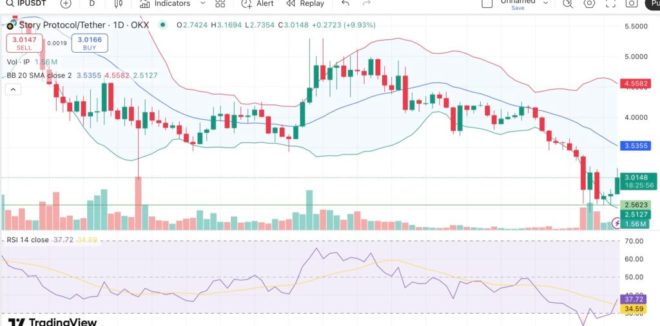 Story Protocol’s IP token has seen a sharp 15% bounce, trading just above $3 after days of downward drift.