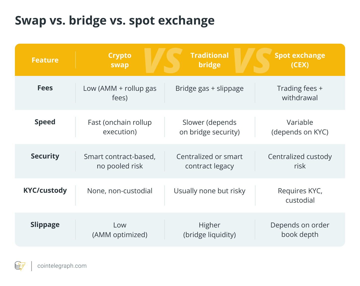 Ultimately, for most users, the combination of speed, low cost and keeping custody makes swapping crypto (especially across chains) more appealing than traditional trading.