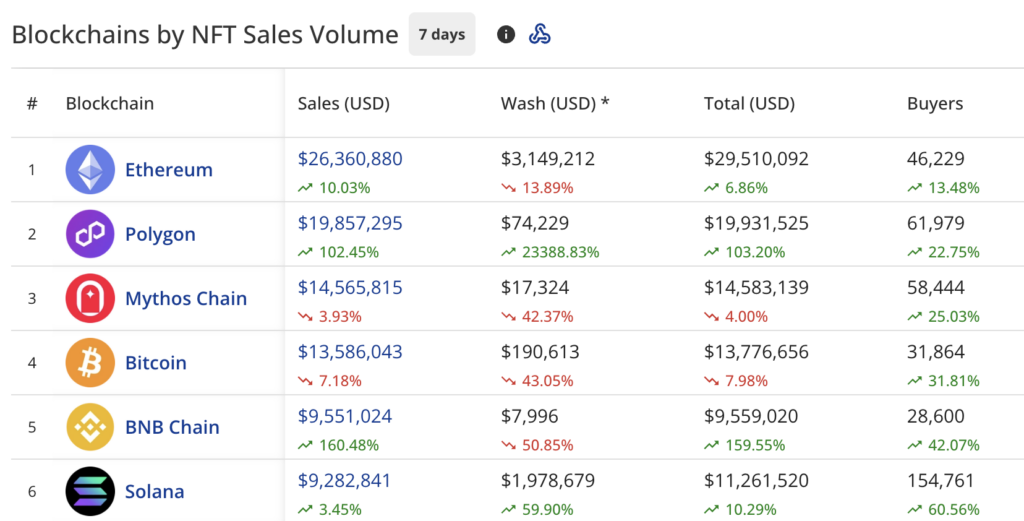 The NFT market is showing strong recovery with sales volume jumping by 22.43% to $107.1 million. According to data from CryptoSlam, the NFT buyer count has increased by 33.82% to 523,950, while NFT sellers have grown by 20.75% to 269,713. NFT transactions have also risen by 22.68% to 1,711,931. The recovery has happened as Bitcoin’s (BTC) price has recovered to the $96,000 level. At the same time, Ethereum (ETH) has shown a 1.6% recovery in the last seven days and is hovering at the $1,800 level. The global crypto market…