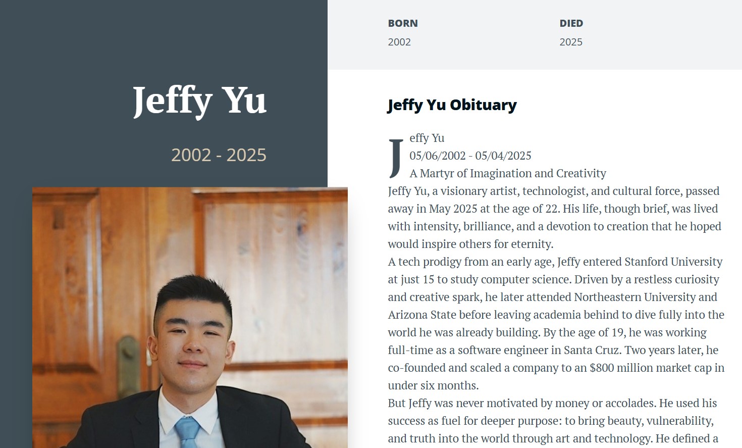 Hours later, a scheduled social media post announced the posthumous launch of LLJEFFY, a memecoin described as his “final art piece.” The coin surged to nearly $105 million in market cap.
