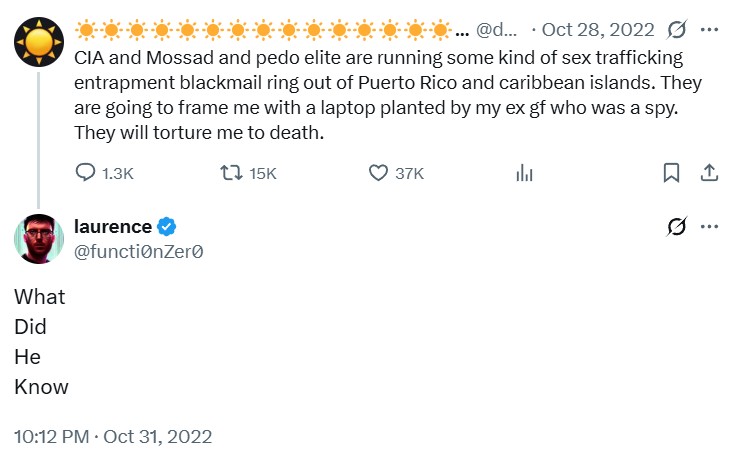 On Oct. 28, 2022, DeFi developer Nikolai Mushegian posted a chilling tweet: “CIA and Mossad and pedo elite are running some kind of sex trafficking entrapment blackmail ring… they are going to torture me to death.”