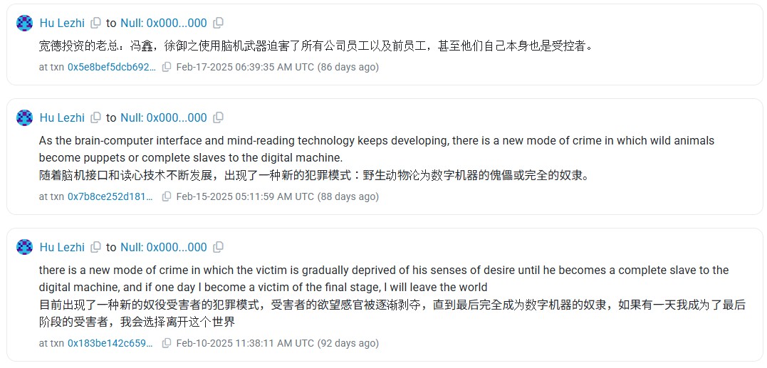 All of it came with onchain messages alleging that a hedge fund called WizardQuant (aka Kuande Investment) was using “brain-computer weapons” to control its employees — including Hu.