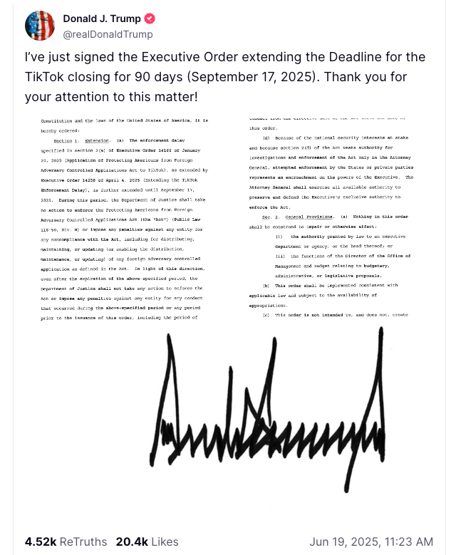 The latest delay marked the third postponement, giving TikTok another 90 days to find a buyer or be banned in the US, according to online reports.