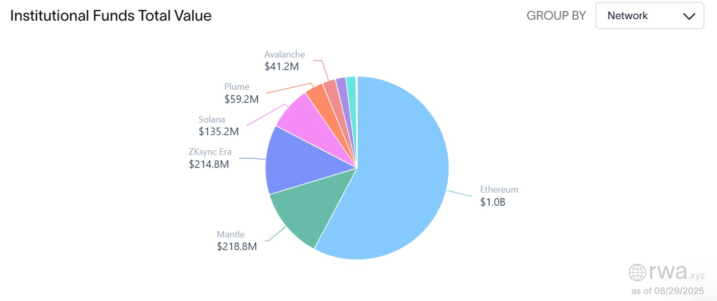 RWA.xyz data showed that Ethereum remained the most dominant network for tokenized IAFs. The blockchain hosts $1 billion in total value, which is more than half of the entire market.