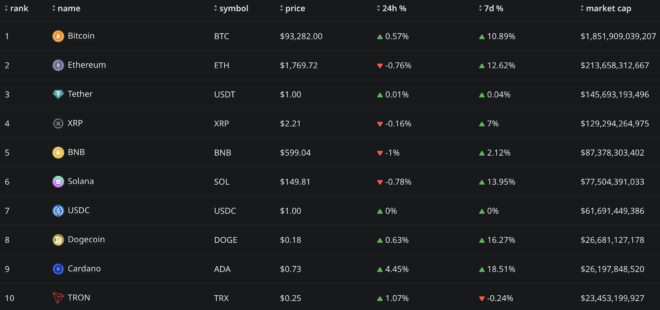 Bitcoin started the week strong, making a comeback above the $94,000 level before correcting mid-week. Early on Thursday, Bitcoin hovered close to the $93,000 support level. The market-wide crypto correction affected altcoins in the top 30 cryptocurrencies by market capitalization, and tokens have kicked off a slight recovery in the past 24 hours.