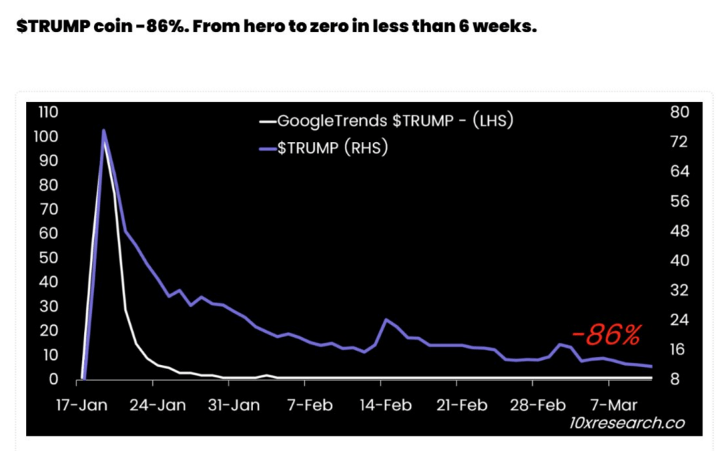 According to 10x Research, most early investors cashed in just before major exchanges listed the coin, as its value moved past $60 and briefly hit $70. The coin’s rapid surge in price was welcomed by everyone, with the early investors getting the best seats in the house. After its quick rise, TRUMP suffered a massive drop. From the low $20s, it’s now trading at $10, leaving retail and small traders with losses.