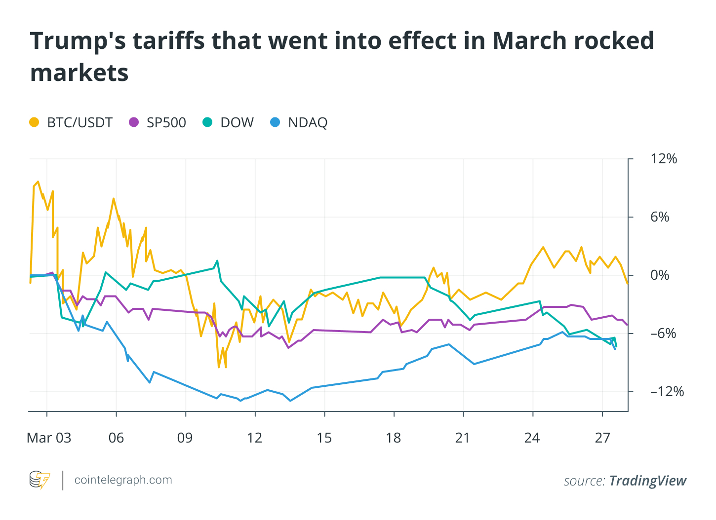 Crypto and traditional financial have been on a downward trend at the end of March as traders brace for “Liberation Day” on April 2, when Trump has promised to levy dollar-for-dollar tariffs on all countries that have tariffs on US goods.