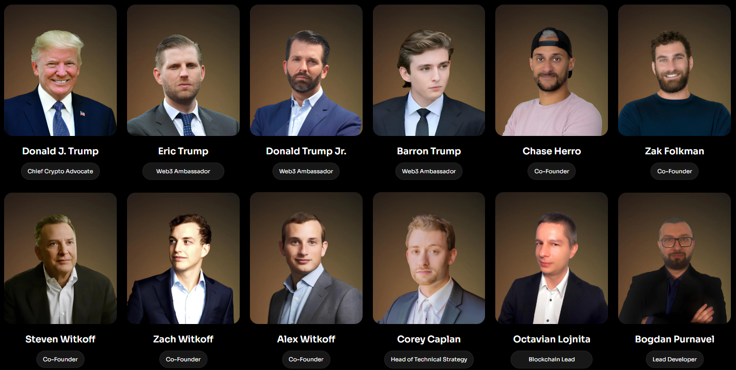 The Trump family also features prominently. President Trump is listed as “chief crypto advocate,” while his sons Eric, Donald Jr. and Barron are “Web3 ambassadors.”