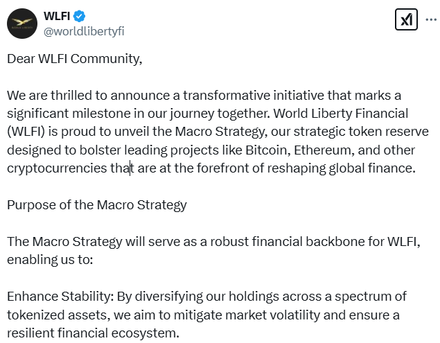 WLFI’s latest digital asset investments occurred nearly a month after the platform unveiled the “Macro Strategy” fund for Bitcoin (BTC), Ether and other cryptocurrencies “at the forefront of reshaping global finance.”