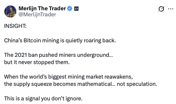 China has gradually regained its position as the world’s third-largest Bitcoin mining hub, after its share of global mining briefly dropped to zero following the ban in 2021, Reuters reported on Thursday.