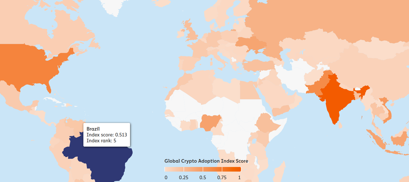 Brazil scored strongly across multiple categories, including retail use of centralized services, decentralized finance activity and institutional access.