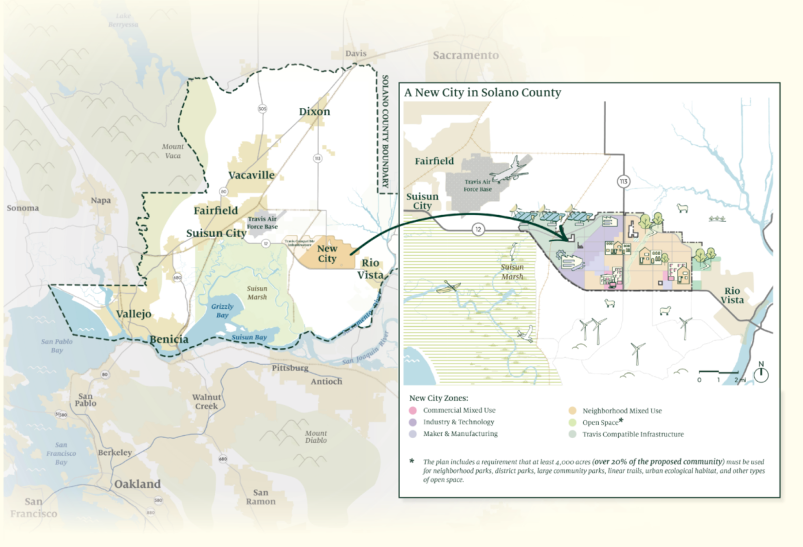 The project’s backers made some missteps, to be sure. They purchased $900 million of farmland in sparsely populated Solano County without revealing anything about the identities of the enterprise’s backers or plans for a new city.