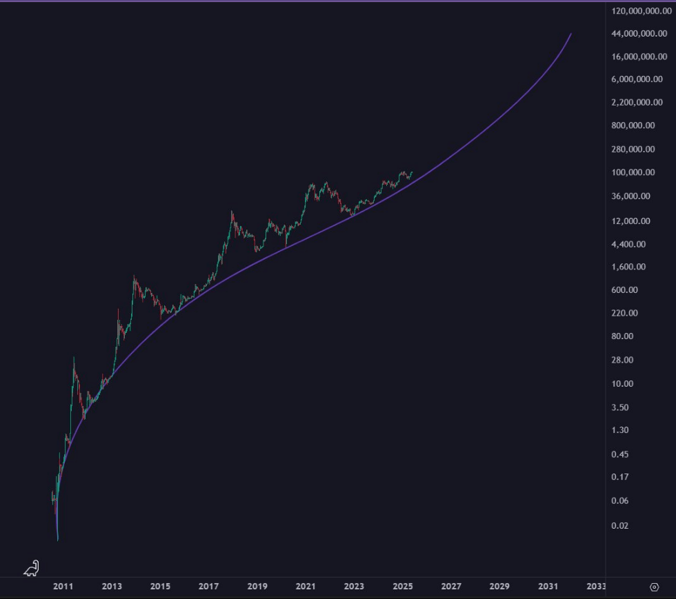 Thomas Fahrer, co-founder of Apollo, has been vocal about the emotional side of owning Bitcoin. According to him, holding Bitcoin is often frustrating—about 90% of the time, he said. But he believes it pays off for those who stick around. Fahrer shared a price chart stretching from 2011 to a projection for 2031, using a curved trendline on a logarithmic scale to show Bitcoin’s consistent upward pattern over time.