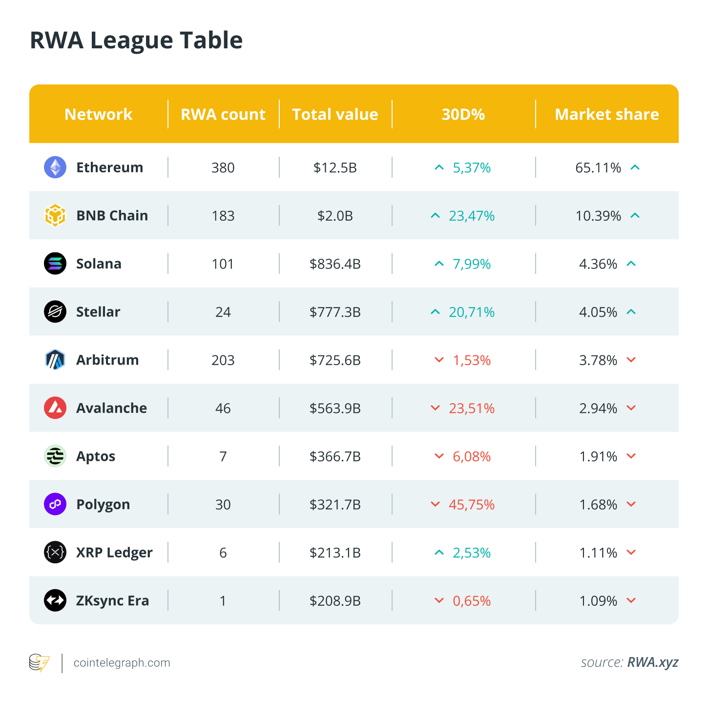 Then there is reach. RWA.xyzโ€™s network table shows Ethereum holding about two-thirds of the total tokenized RWA value.
