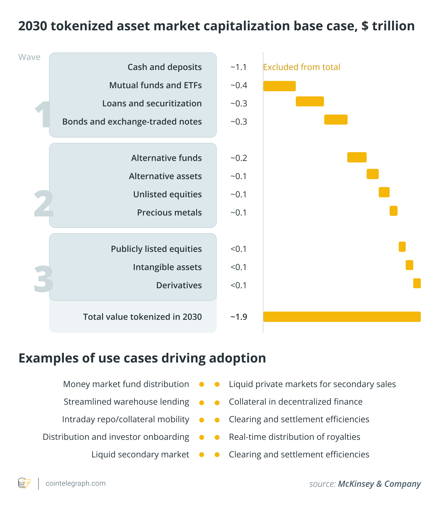 McKinseyโ€™s base case estimates tokenized financial assets at around $2 trillion by 2030, excluding crypto and stablecoins.