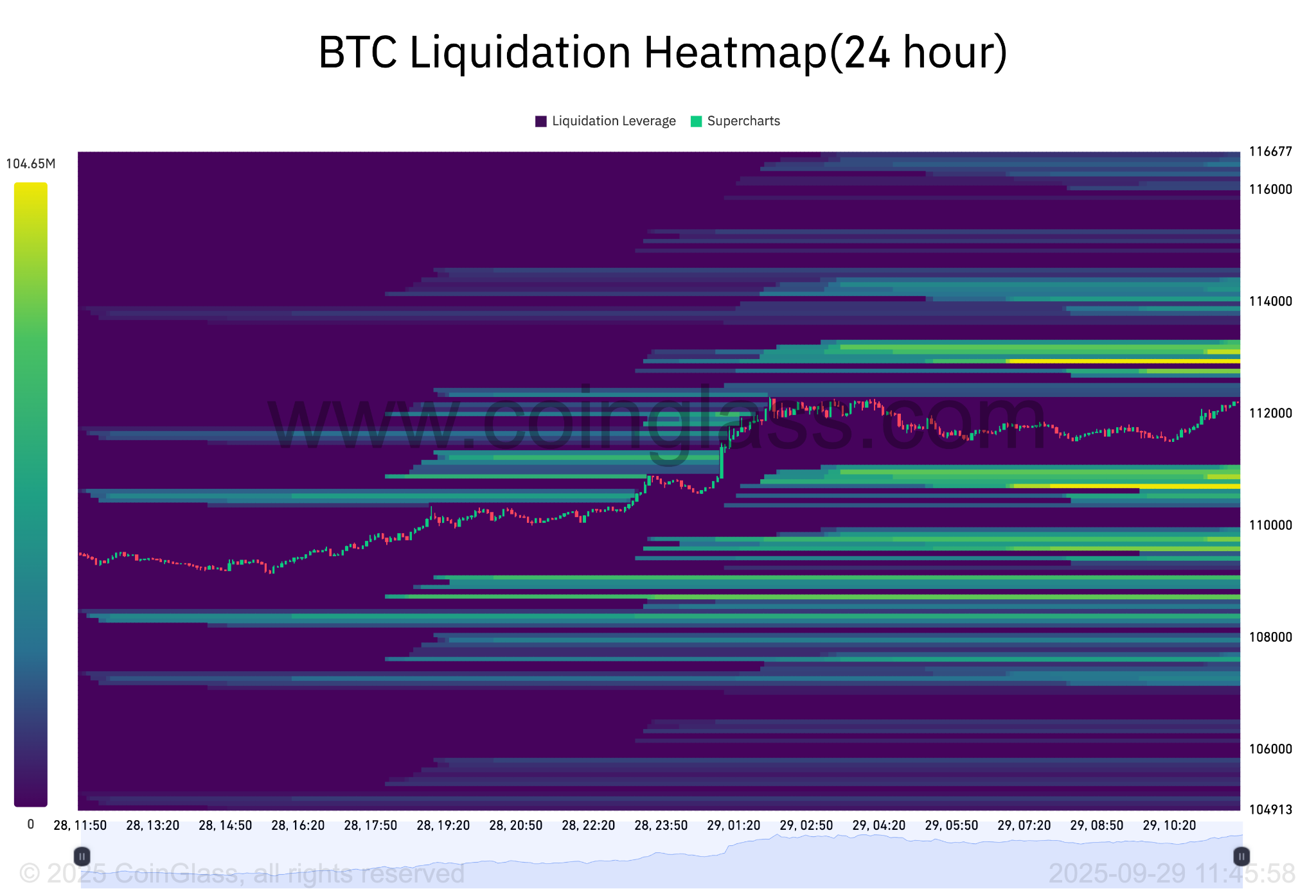 The 24-hour Bitcoin liquidation heatmap showed that BTC price could target a large block of bid liquidity as it moves higher. There is over $612 million in ask orders between $112,350 and $114,000.