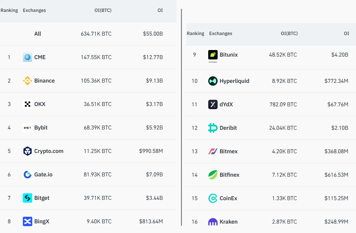 Bitcoin futures open interest ranking, USD. Source: CoinGlass