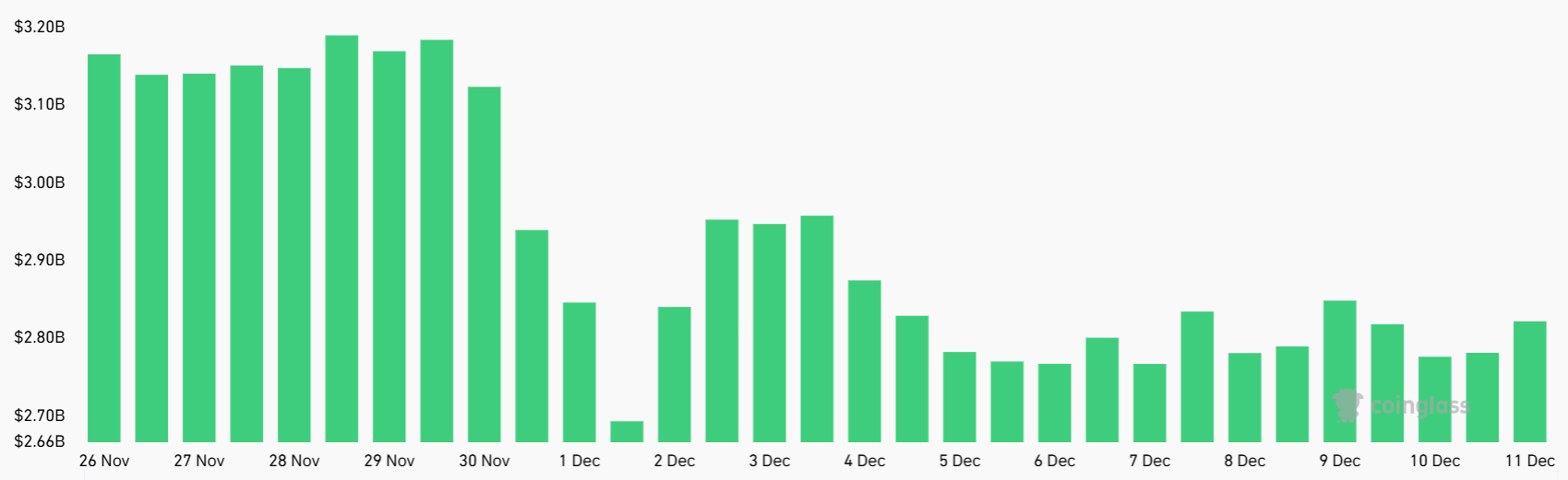 Aggregate open interest in XRP futures stood at $2.8 billion on Thursday, unchanged from the prior week. Still, leveraged positions have not recovered the $3.2 billion level seen in late November. The data suggests XRP bears are reluctant to increase exposure, especially after the token has already dropped 45% since reaching $3.66 in July.