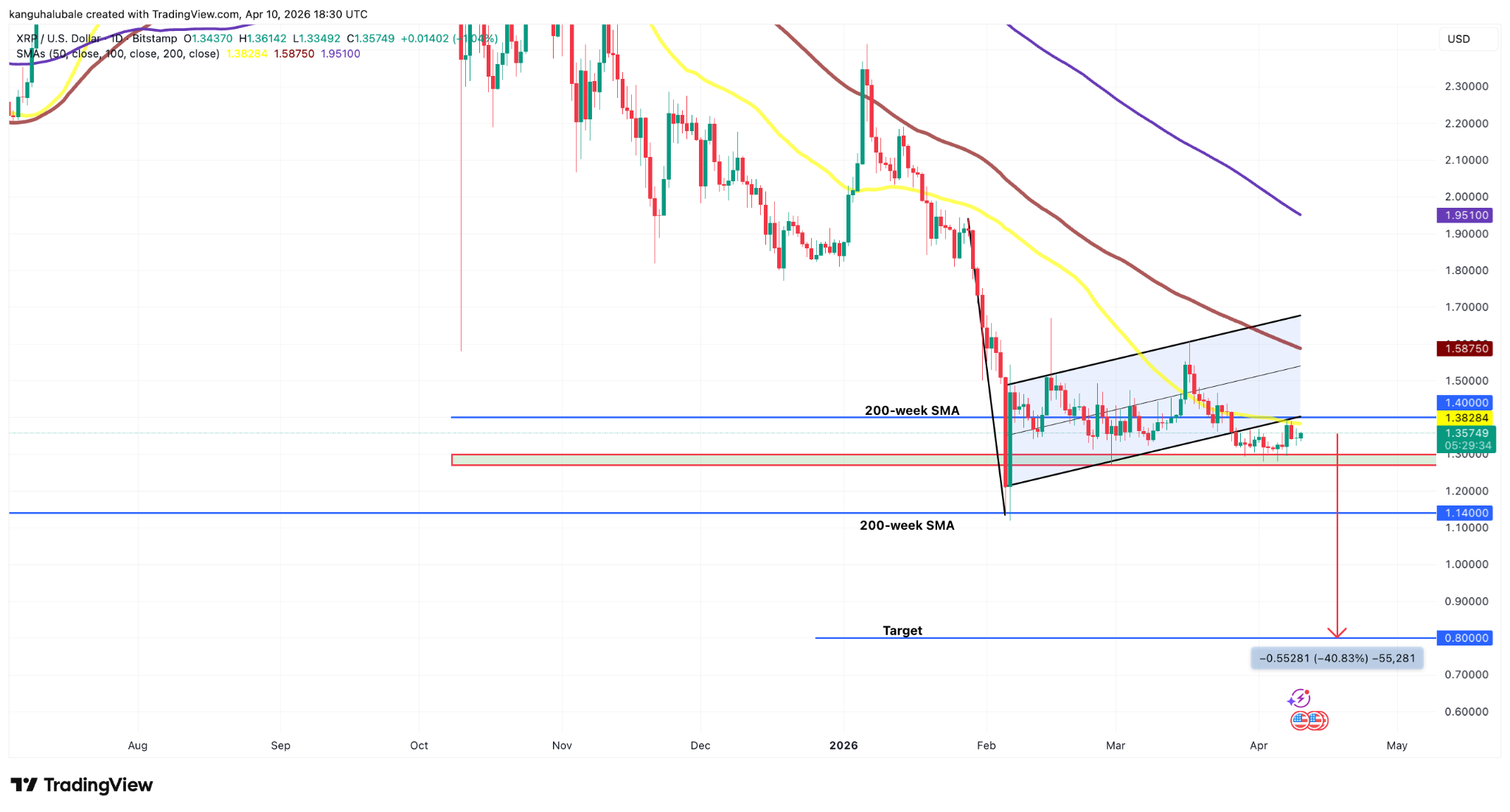 If XRP/USD drops below this level, it would be in a free-fall toward the measured target of the bear flag at $0.80, or 41% below the current price.