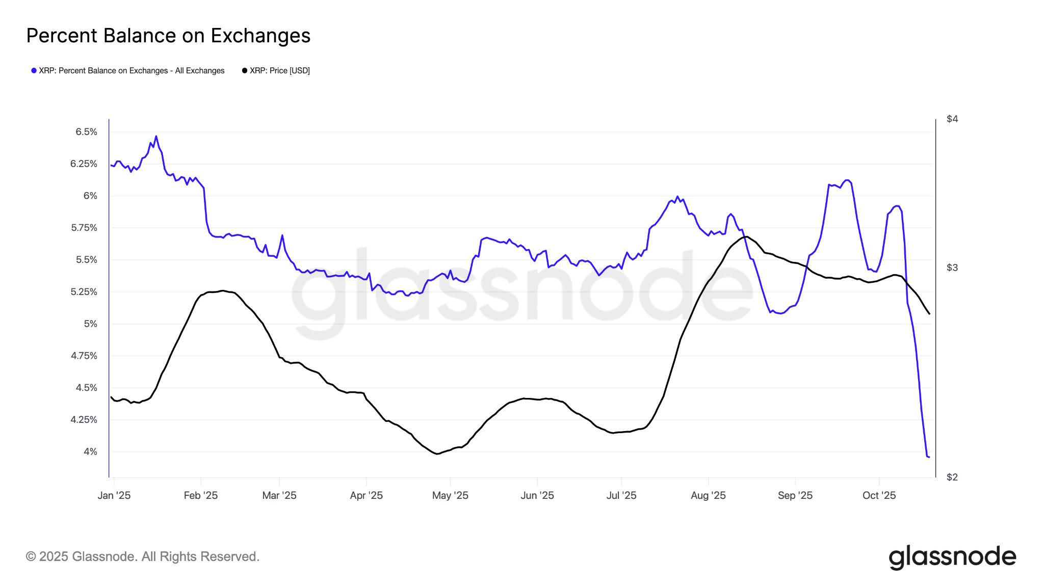 XRP percentage balance on exchanges. Source: Glassnode