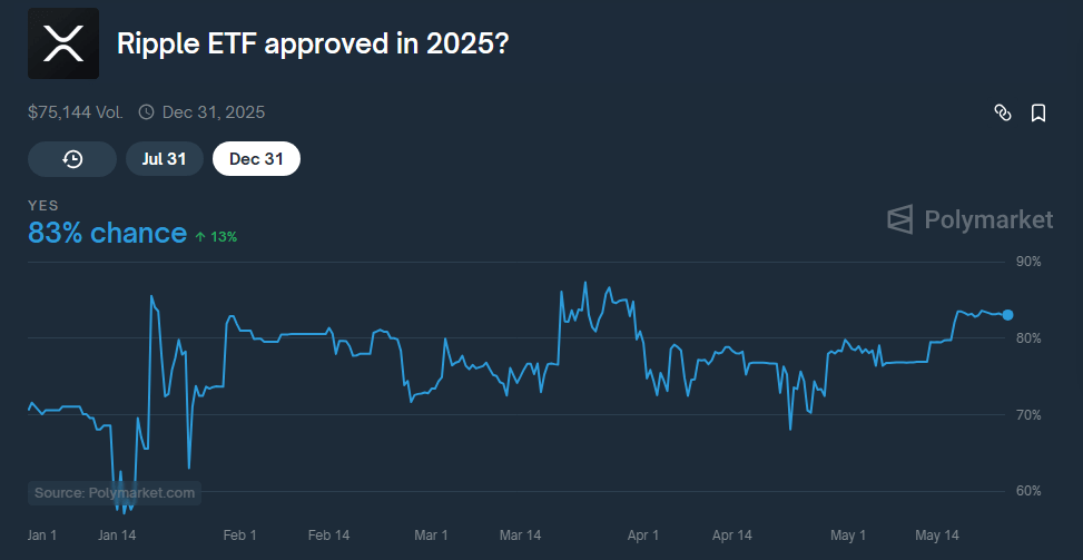 Based on prediction by Polymarket, there’s an 83% chance the SEC will approve an XRP ETF. Big names like Bitwise and Grayscale have filings in play. If those get the green light, institutional flows could pour in. Some US-listed leveraged XRP futures already trade heavily, showing strong demand.